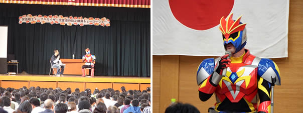 幼少期心の支えだった仮面ライダーのような存在になることを夢描き、ご当地ヒーローとして夢を叶えるまでのお話や、苦手なことへ挑戦することの大切さ、やり遂げる気持ちの強さ等を子どもたちにお話しいたします。
